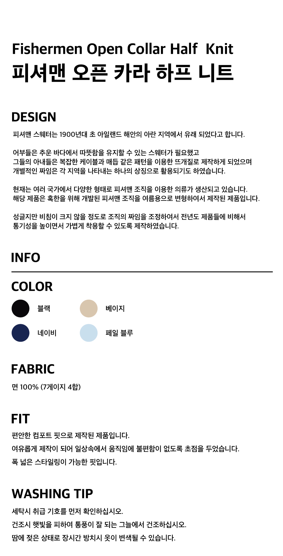 피셔맨 오픈 카라 하프 니트 페일 블루