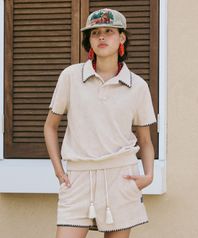 리조트 쉘 패턴테리 하프 풀오버 베이지_FR2KT202