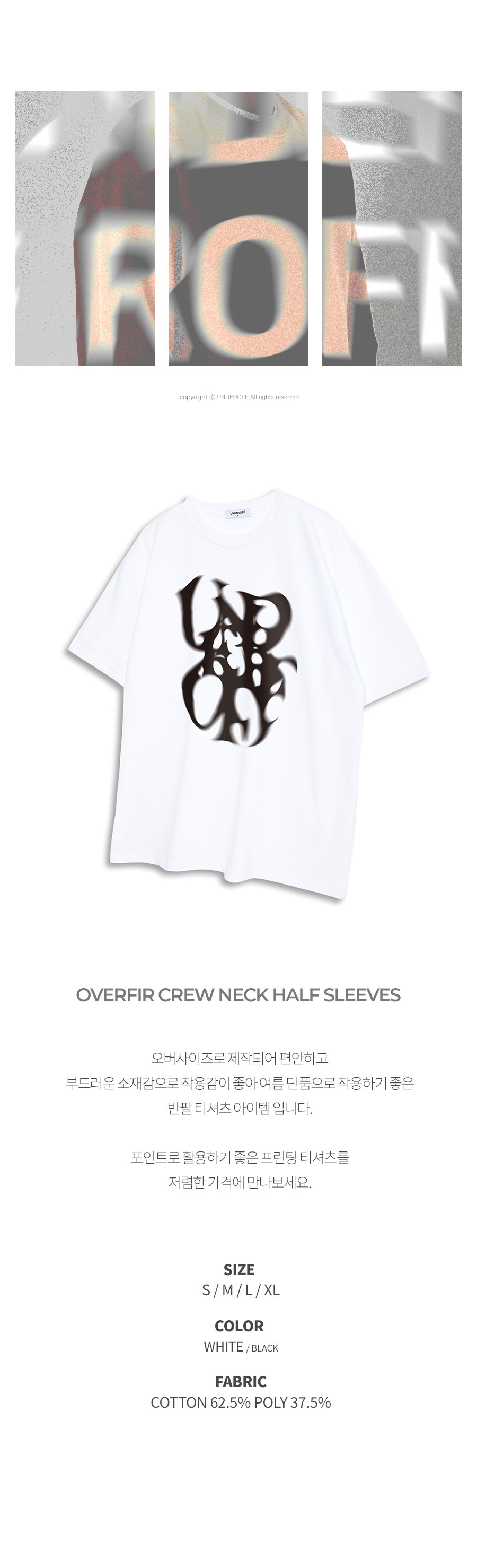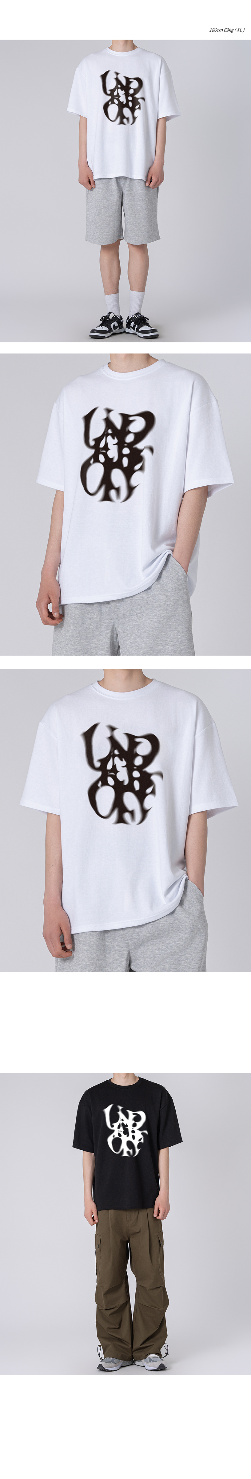 오버핏 크루넥 언더오프 스모크 반팔 티셔츠 블랙