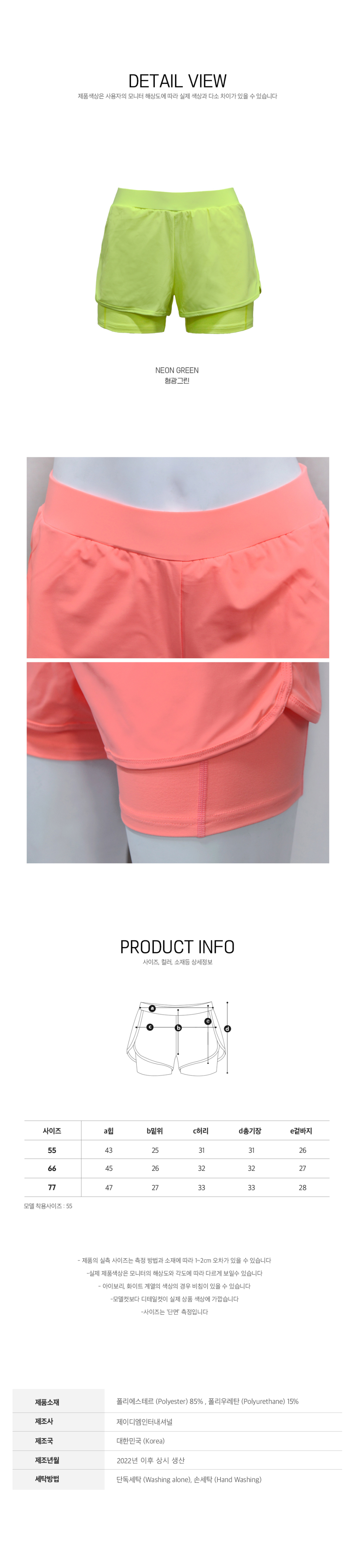 여성용 미들 비치팬츠 보드숏 B501 피치