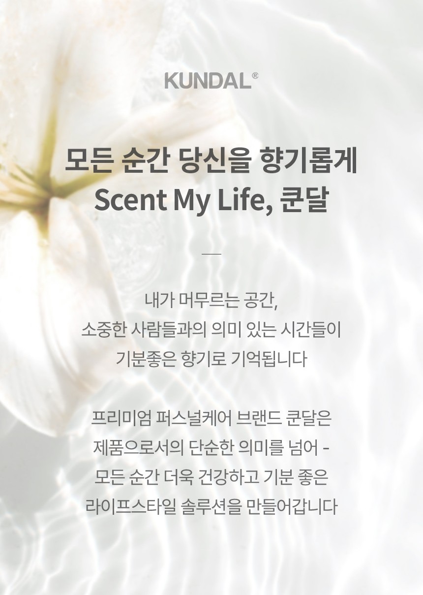 쿤달(KUNDAL)은 모든 사람이 만족할 수 있는 자연 친화적 퍼스널 케어 제품을 선사하는 브랜드입니다. 자연 친화적 사고를 기반으로 행복한 삶의 원동력과 자연의 아름다움을 제공합니다.