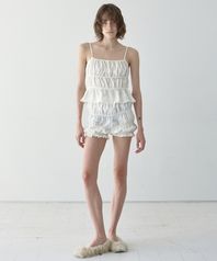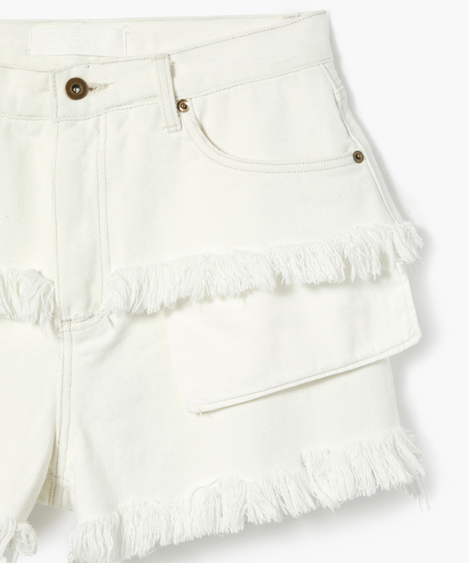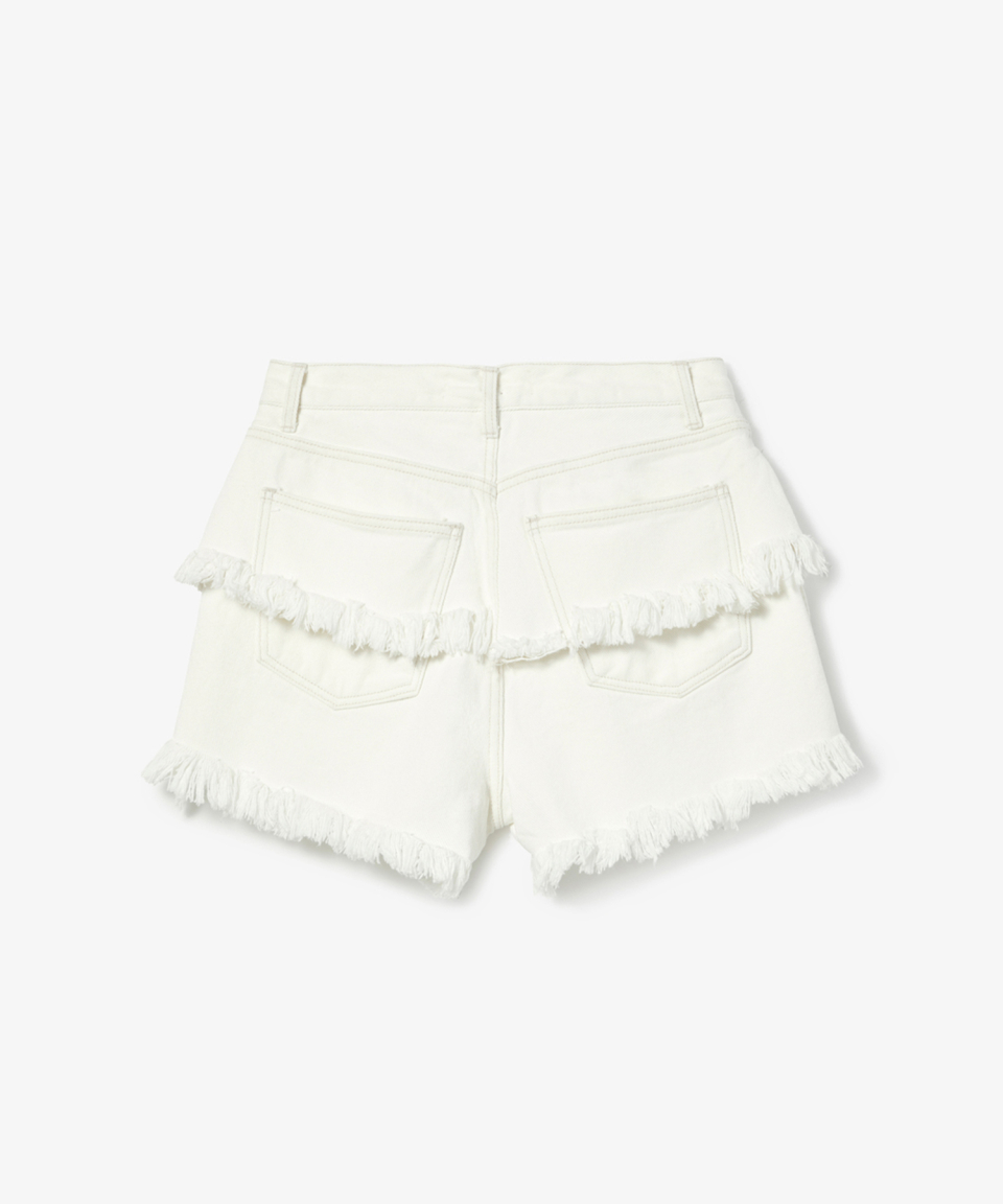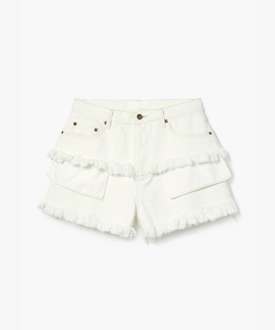 EXPOSED POCKET LAYERED DENIM SHORTS_ECRU