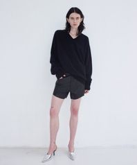 EXPOSED POCKET LAYERED DENIM SHORTS_BLACK