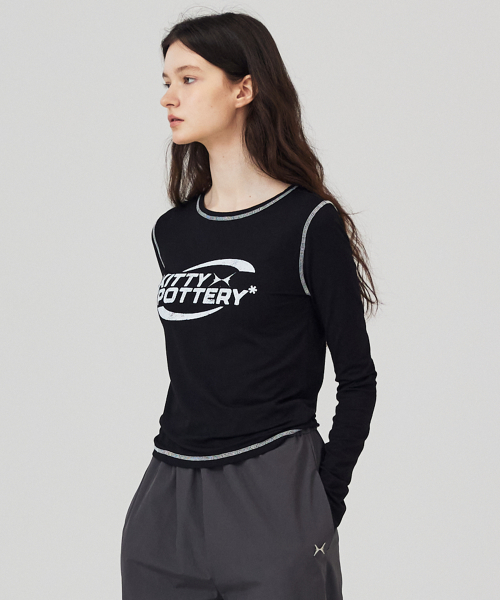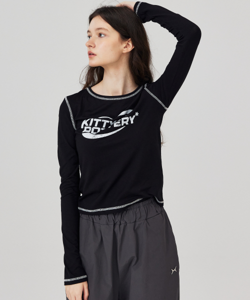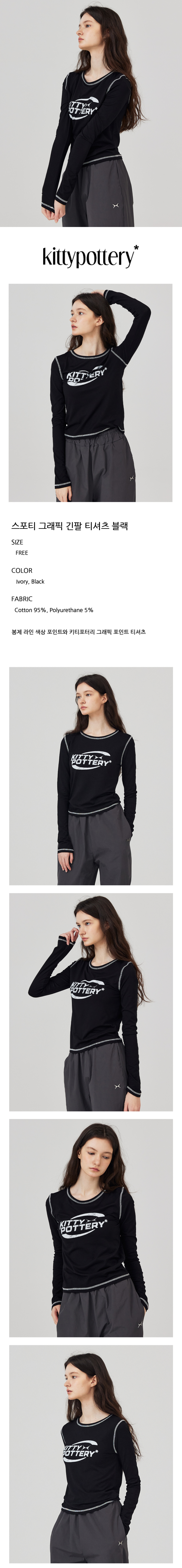 스포티 그래픽 긴팔 티셔츠 블랙