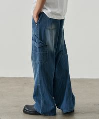 스트라이프 리버스 카펜터 데님 팬츠 [미드블루]