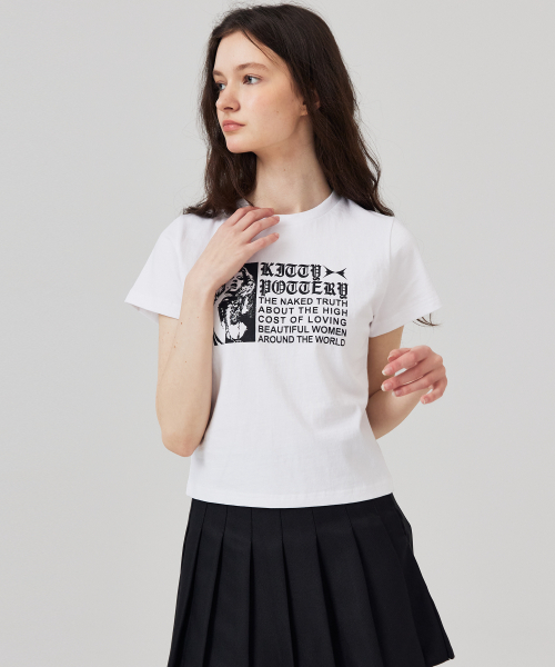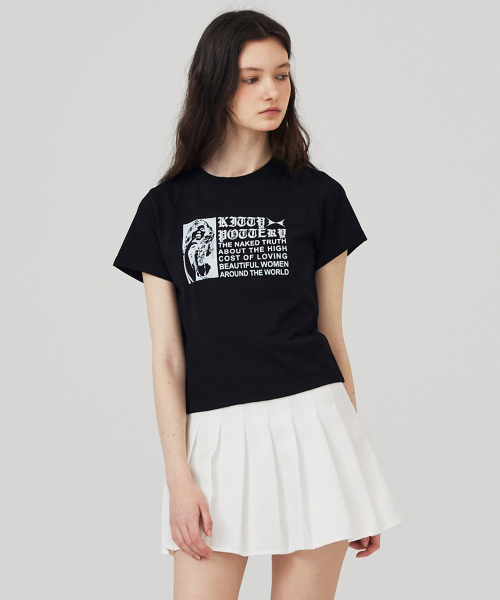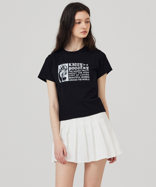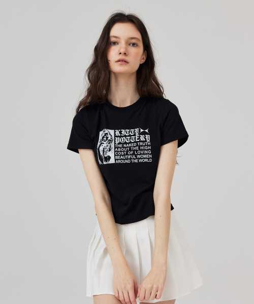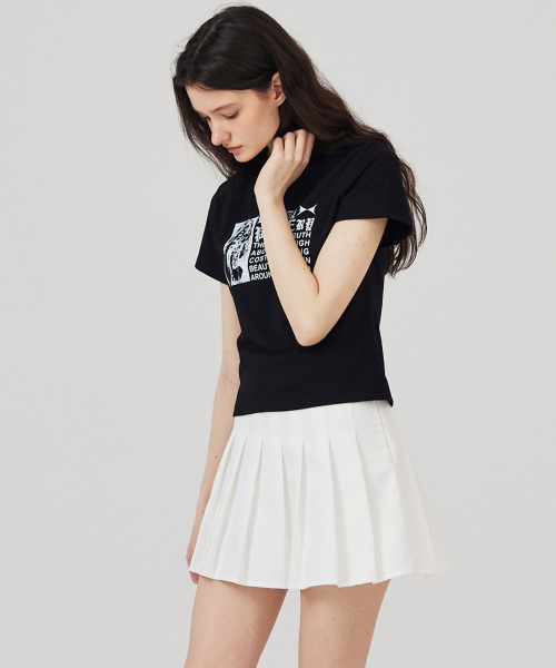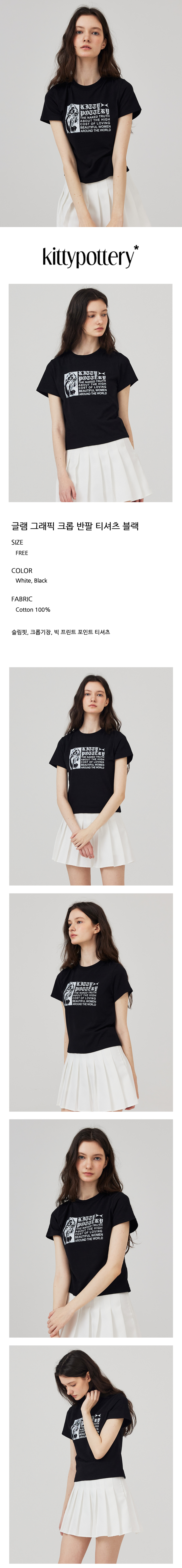 글램 그래픽 크롭 반팔 티셔츠 블랙