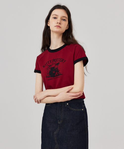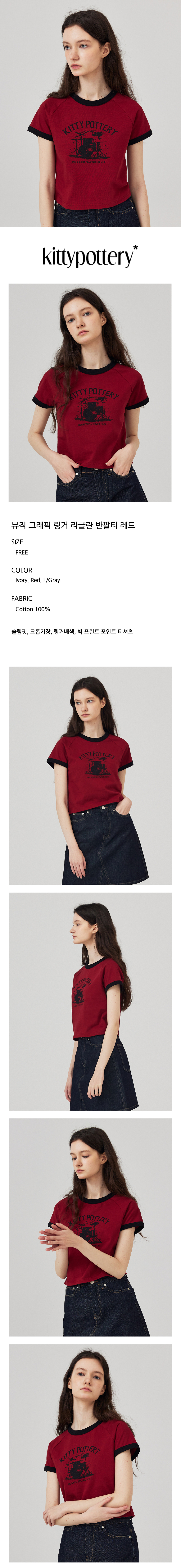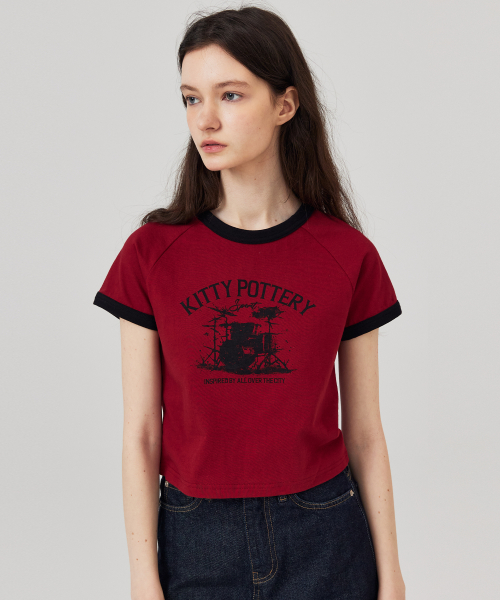 뮤직 그래픽 링거 라글란 반팔티 레드