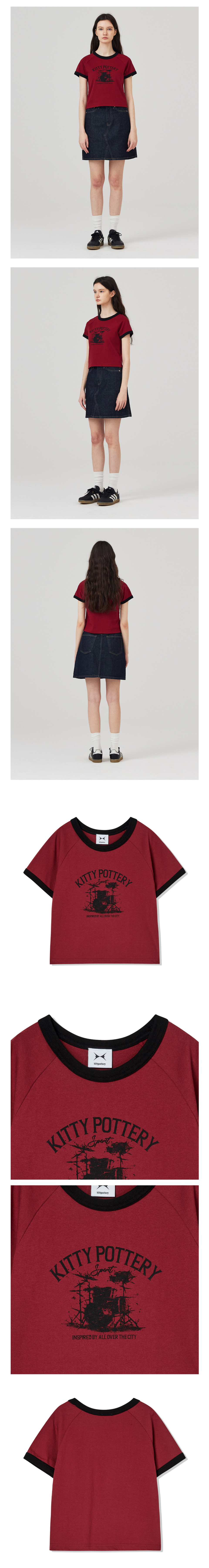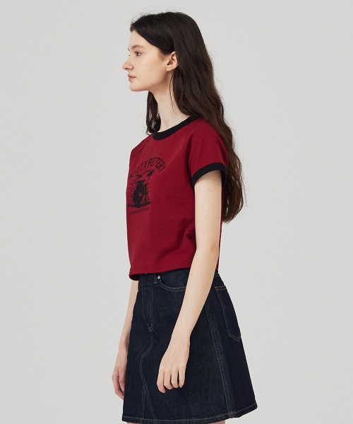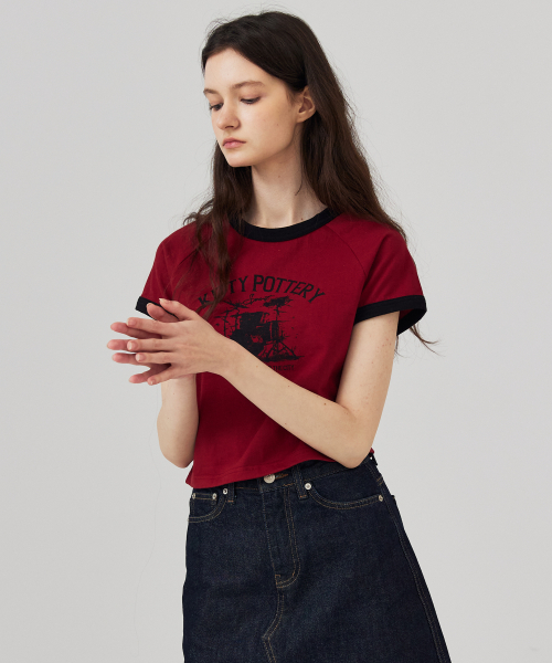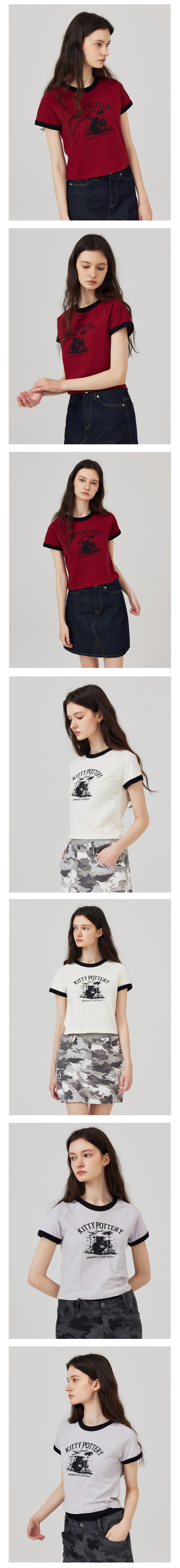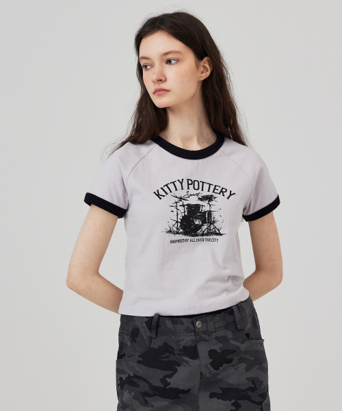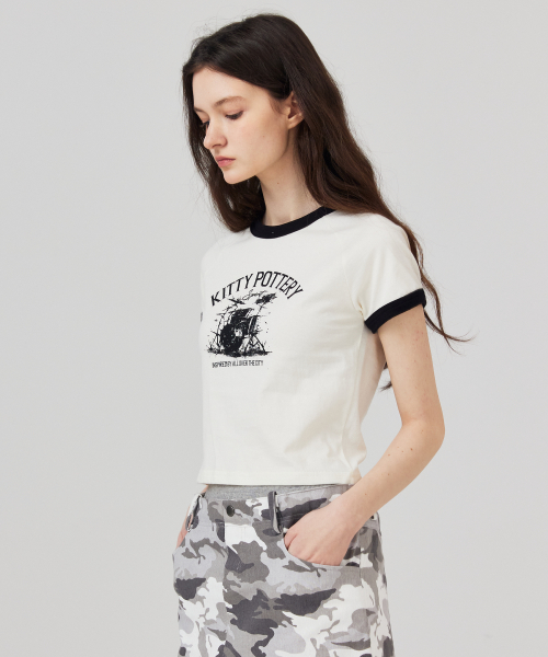 링거 크롭 반팔 티셔츠 아이보리
