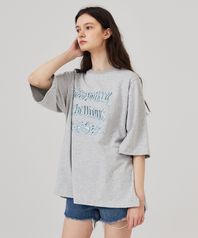 디지털 프린트 반팔 티셔츠 멜란지그레이