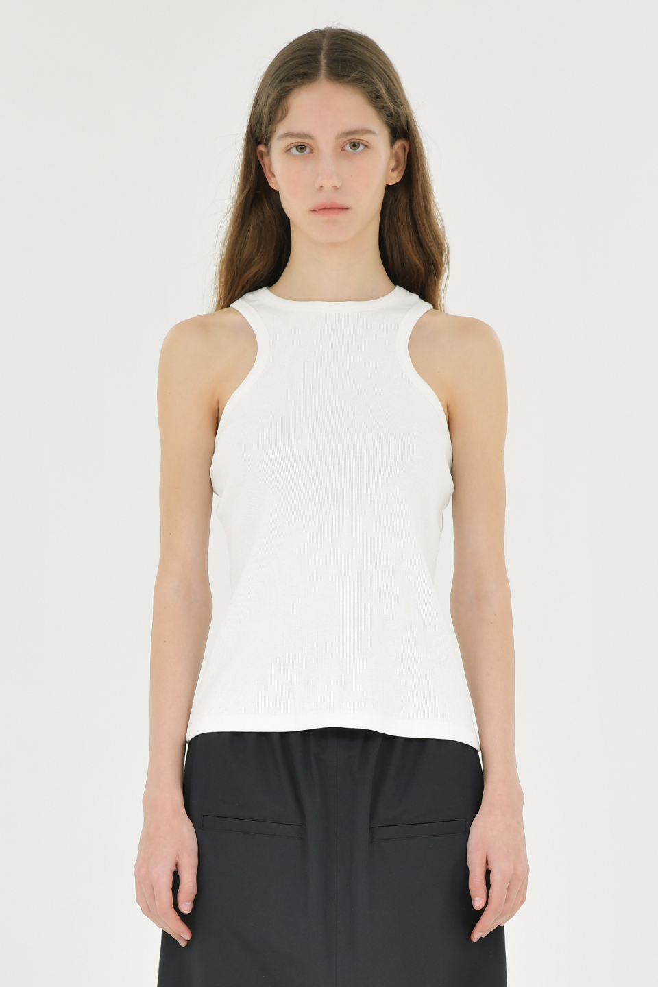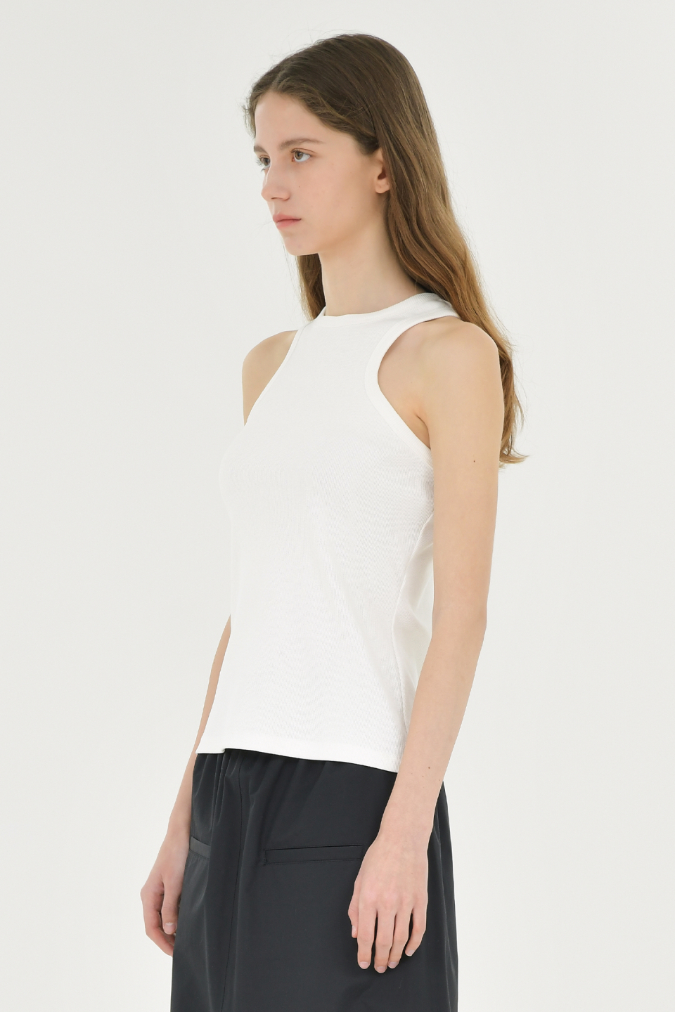 W 리브드 컷 아웃 슬리브리스, 블랙