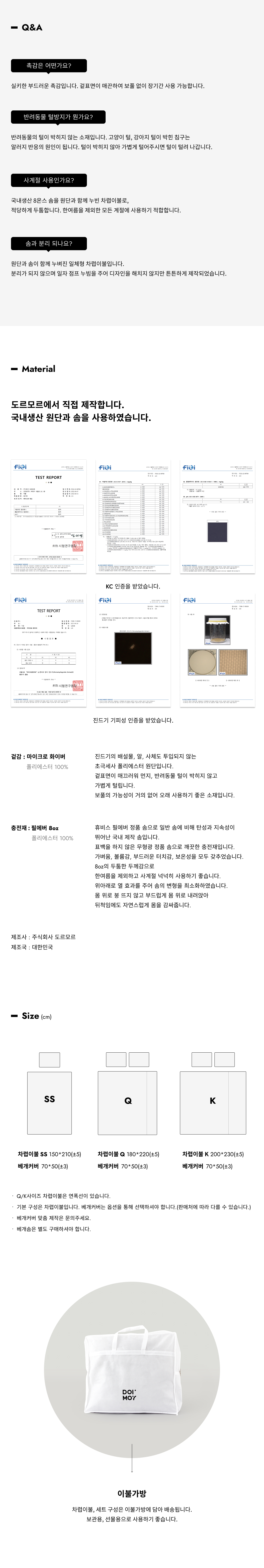 도르모르(DORMOR)는 `잠들다`라는 뜻의 `도르미르(dormir)`를 의미합니다. 수면과 관련된 모든 제품을 제작합니다. 30년 경력의 제조공장과 그래픽 디자이너의 협업으로 시작된 도르모르는 자체 공장에서 직접 생산&연구하여 편하고 좋은 원단으로 예쁜 이불을 선보입니다.