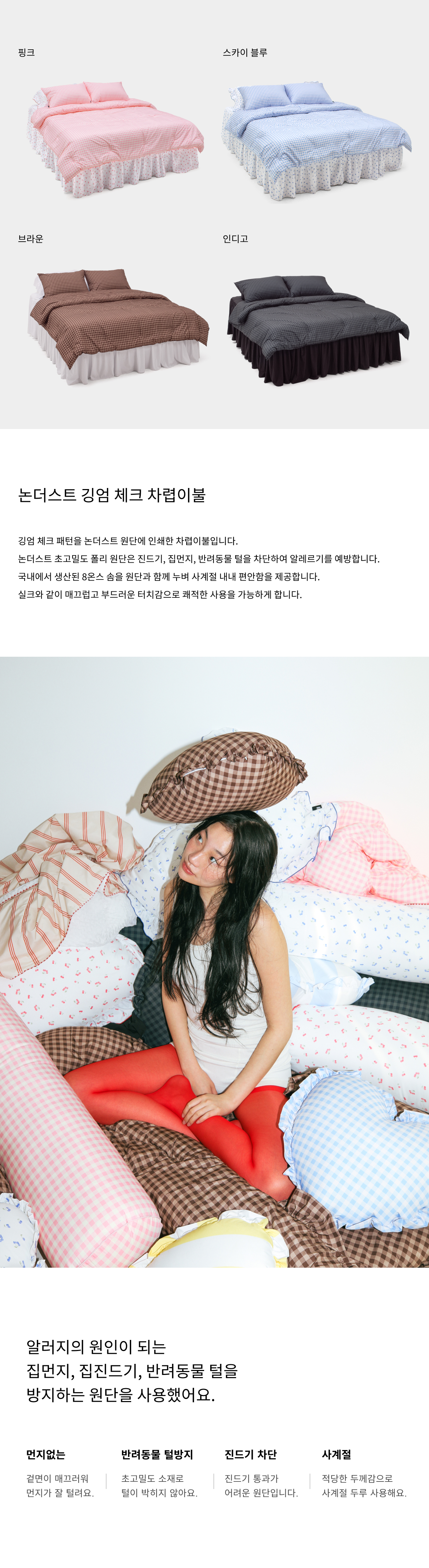 논더스트 깅엄 체크 프릴 알러지케어 차렵이불 4colors 3size