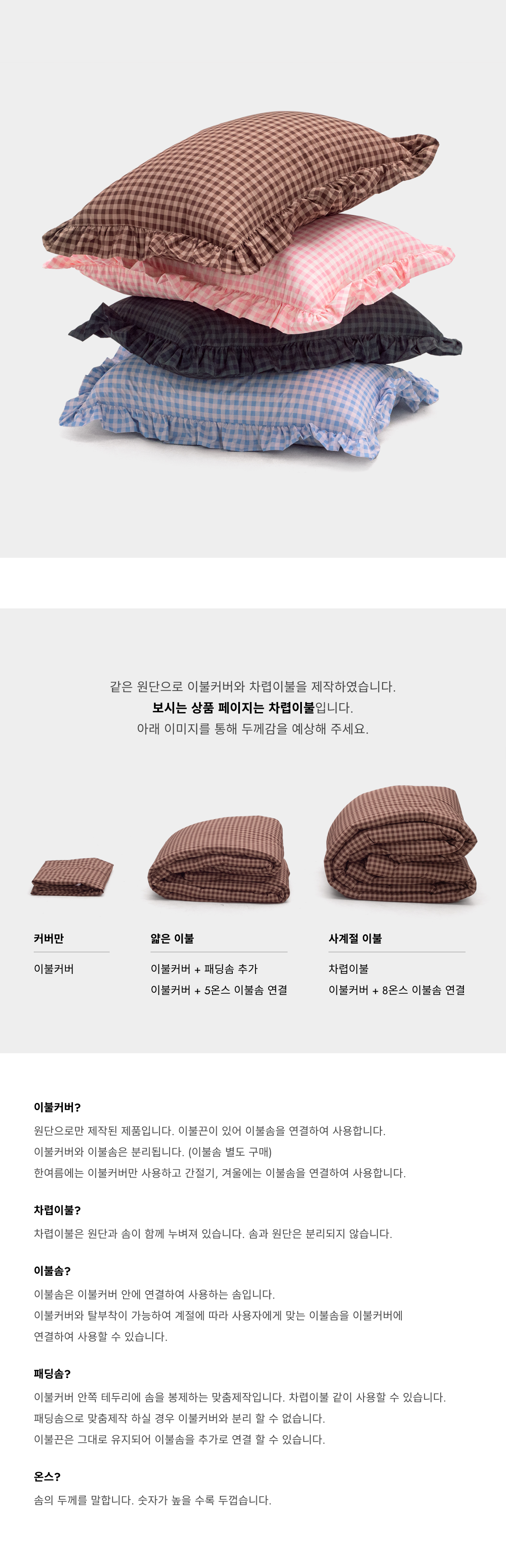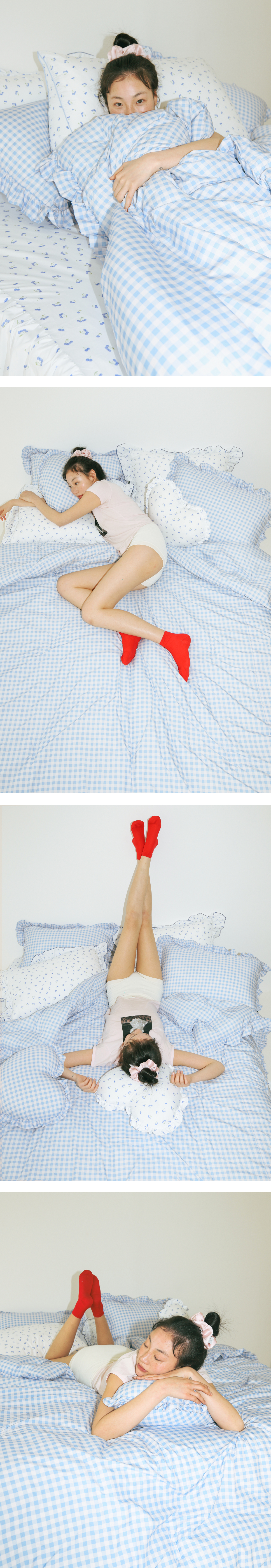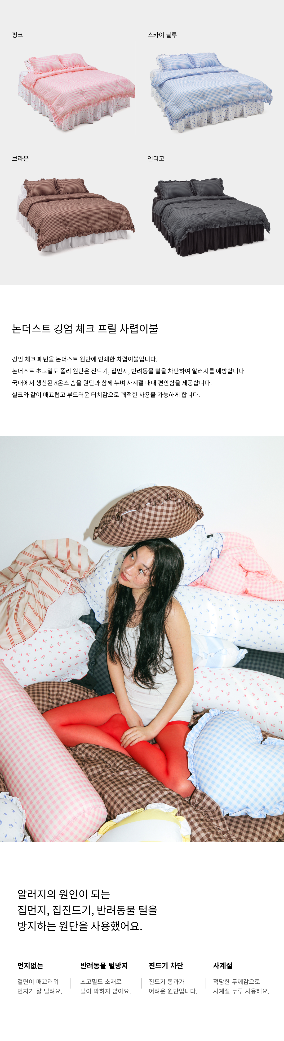 논더스트 깅엄 체크 프릴 알러지케어 차렵이불 4colors 3size