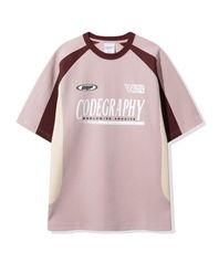 레이싱 배색 반소매 티셔츠_핑크