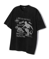 스케이트보드 피그먼트 그래픽 반팔 티셔츠 (BLACK)