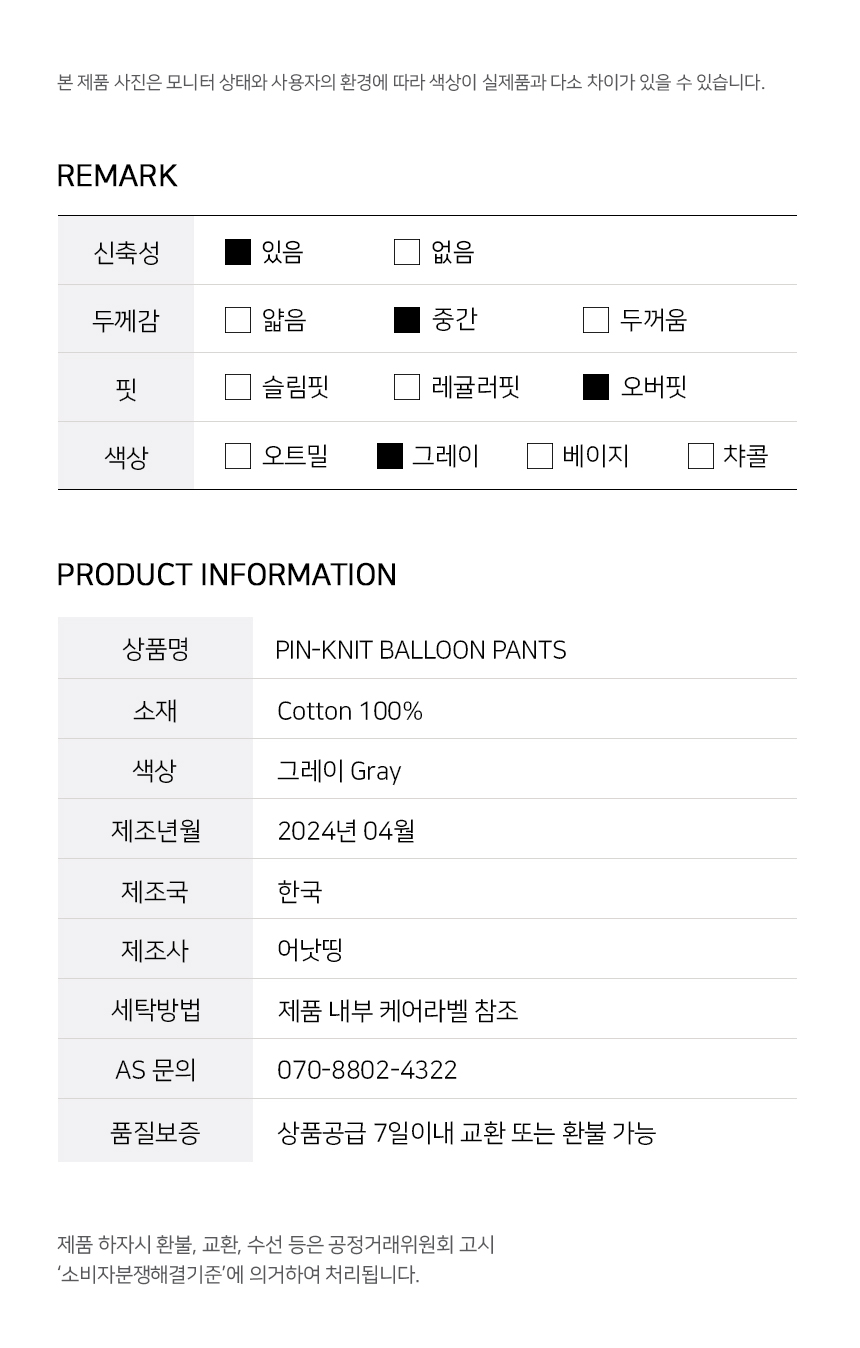 PIN-KNIT BALLOON PANTS (Gray)