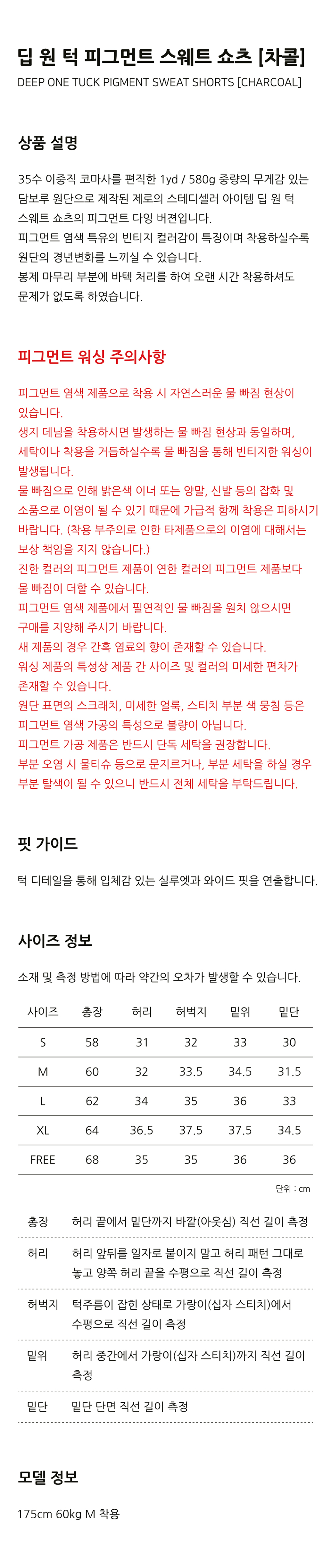Deep One Tuck Pigment Sweat Shorts [Charcoal]