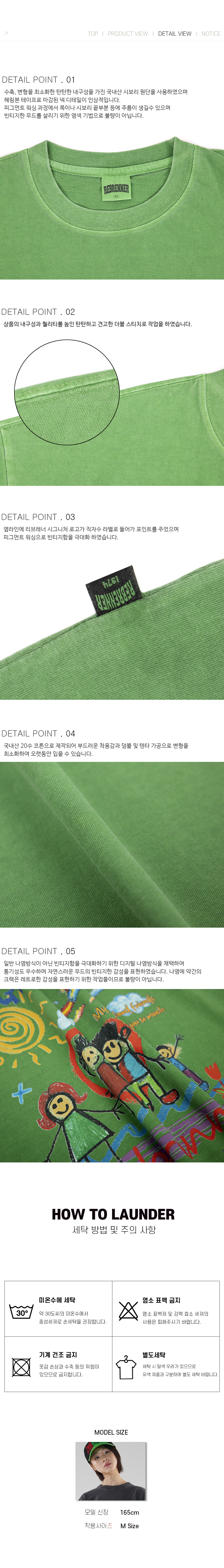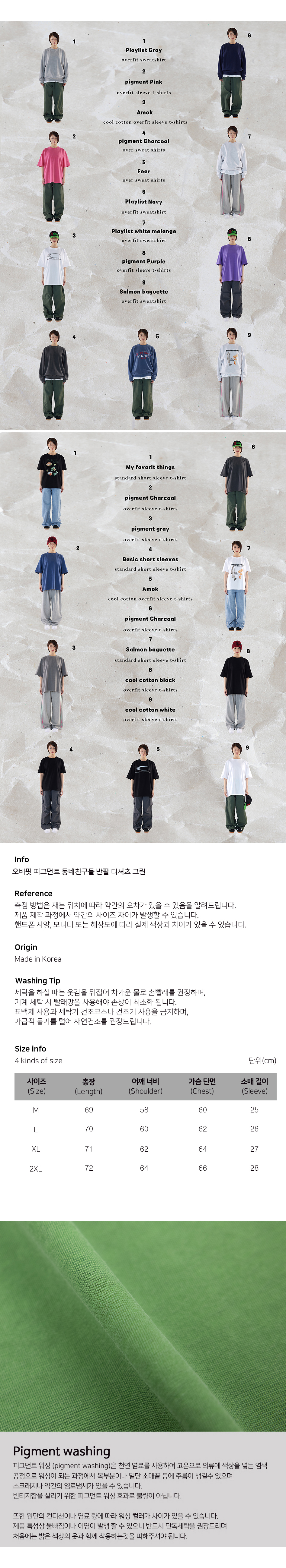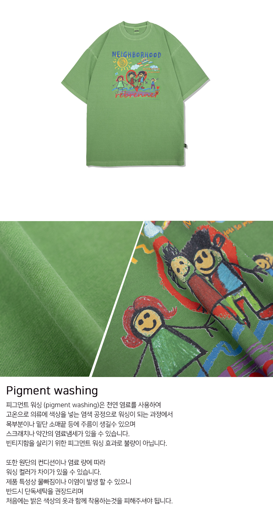 동네친구들 피그먼트 오버핏 반팔티셔츠 그린