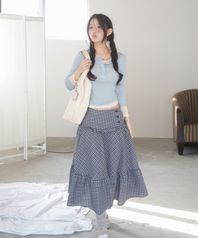 [조수잔X히어리]수잔 체크 롱 스커트_네이비 체크