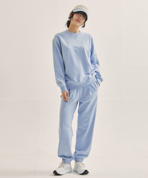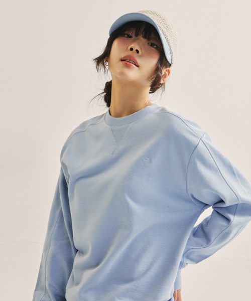 WW 커버 스티치 스웨트 셔츠[스카이블루]