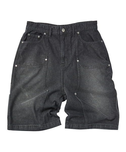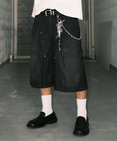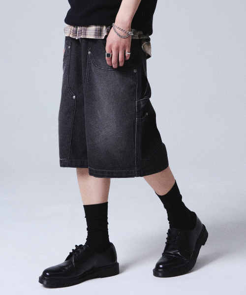 워싱 데님 카펜터 쇼츠 차콜