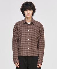데일리 크롭 포켓 체크 셔츠[브라운]