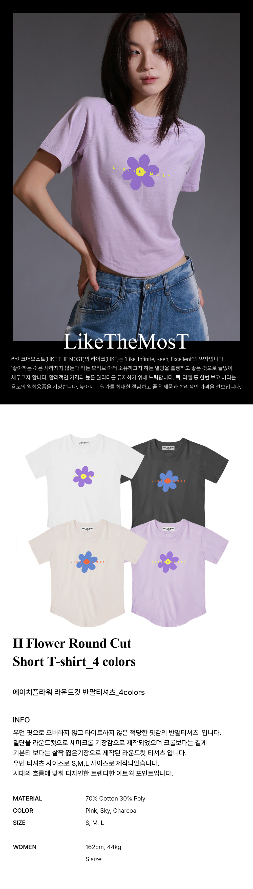 에이치플라워 라운드컷 반팔티셔츠_4colors