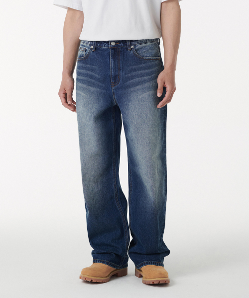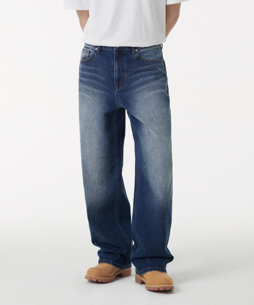 빅 브러쉬 와이드 데님 팬츠 [미디엄 인디고]