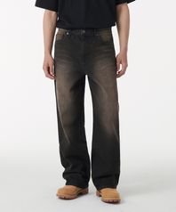 빅 브러쉬 와이드 데님 팬츠 [블랙]