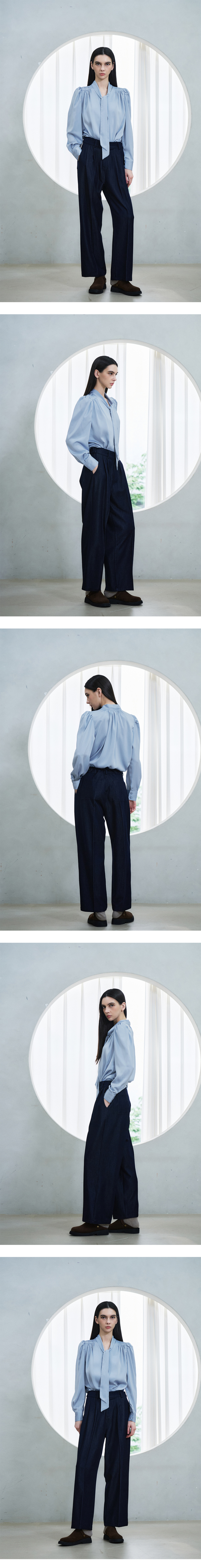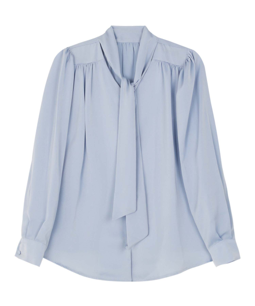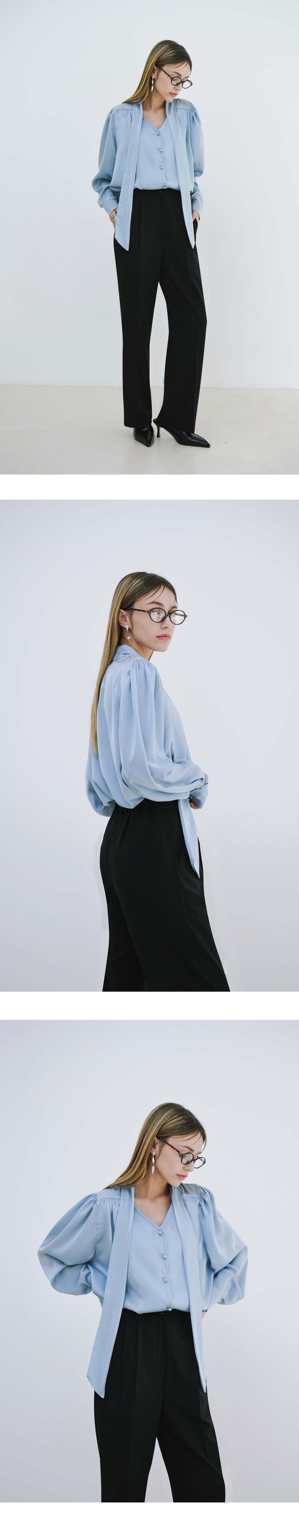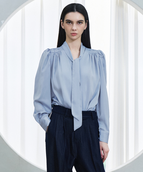 리버시블 샤이니 타이 블라우스_SKYBLUE
