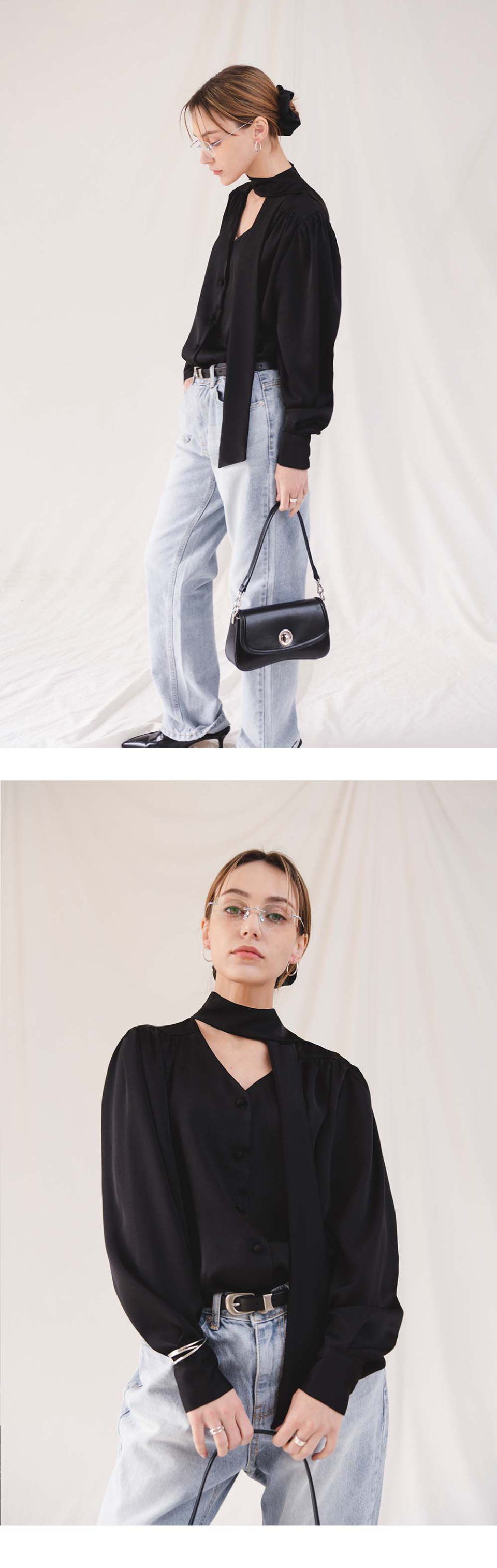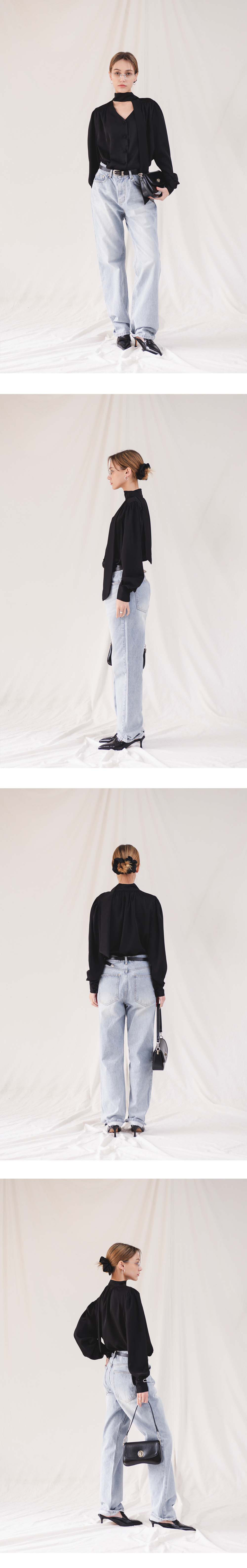로망스 셔링 타이 블라우스_F6S209BL