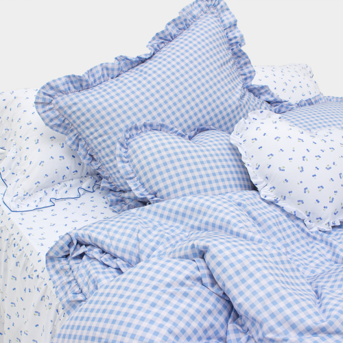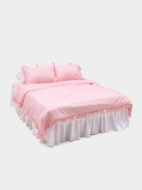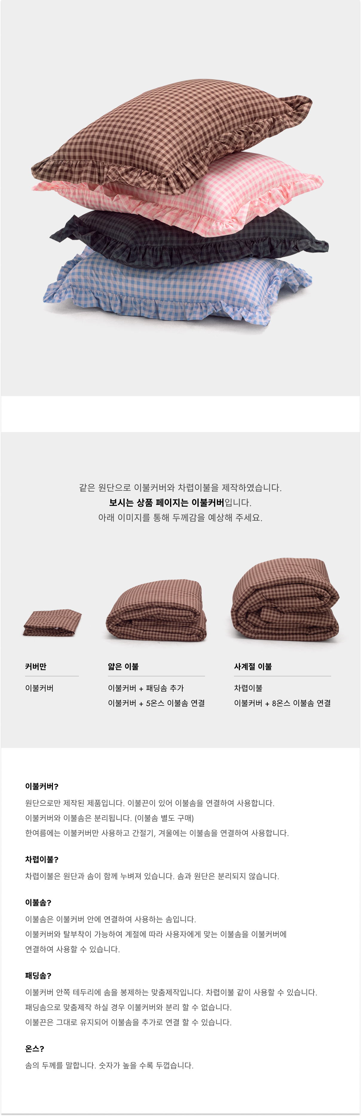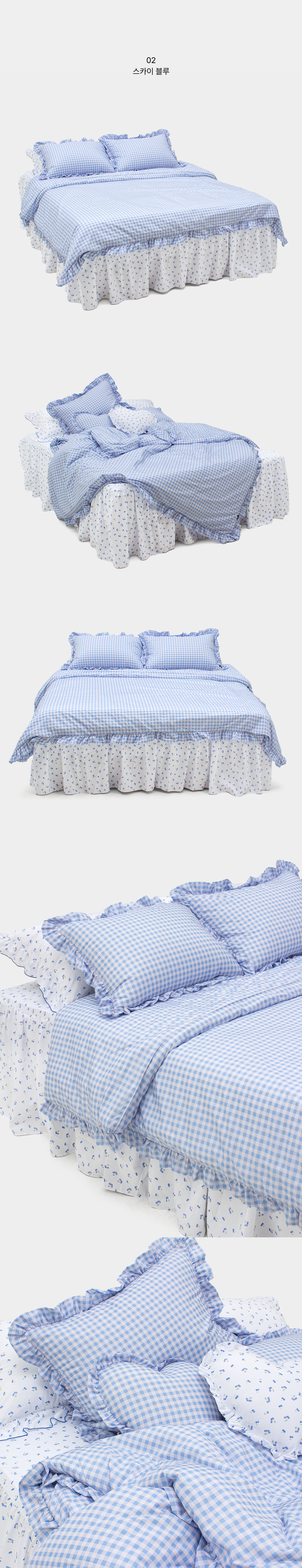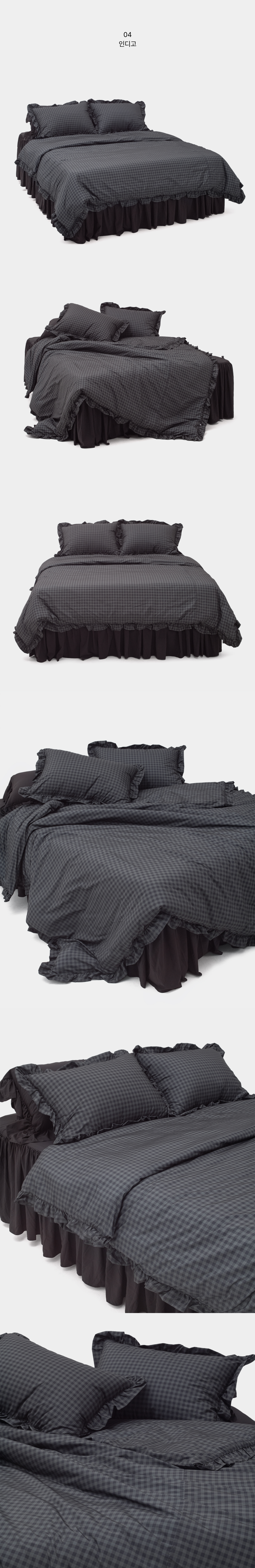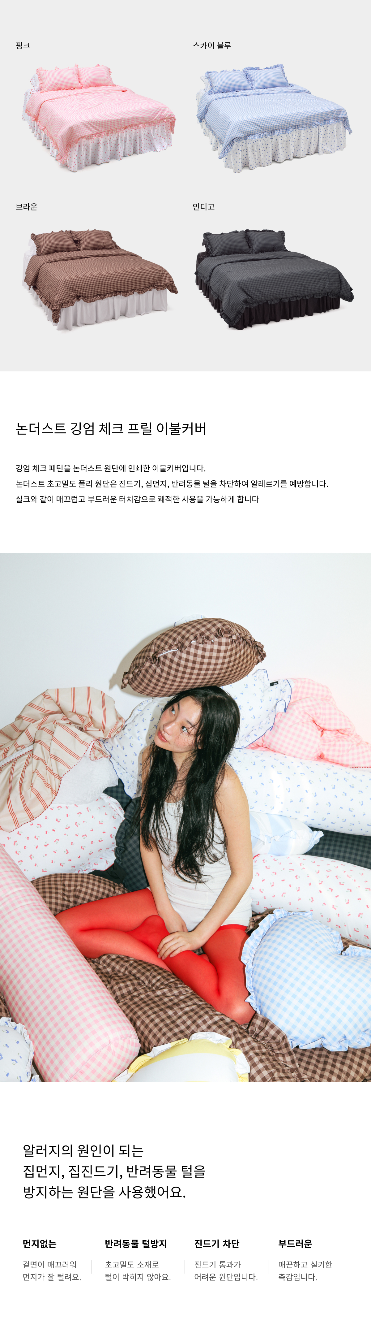 논더스트 깅엄 체크 프릴 알러지케어 이불커버 4colors 3size