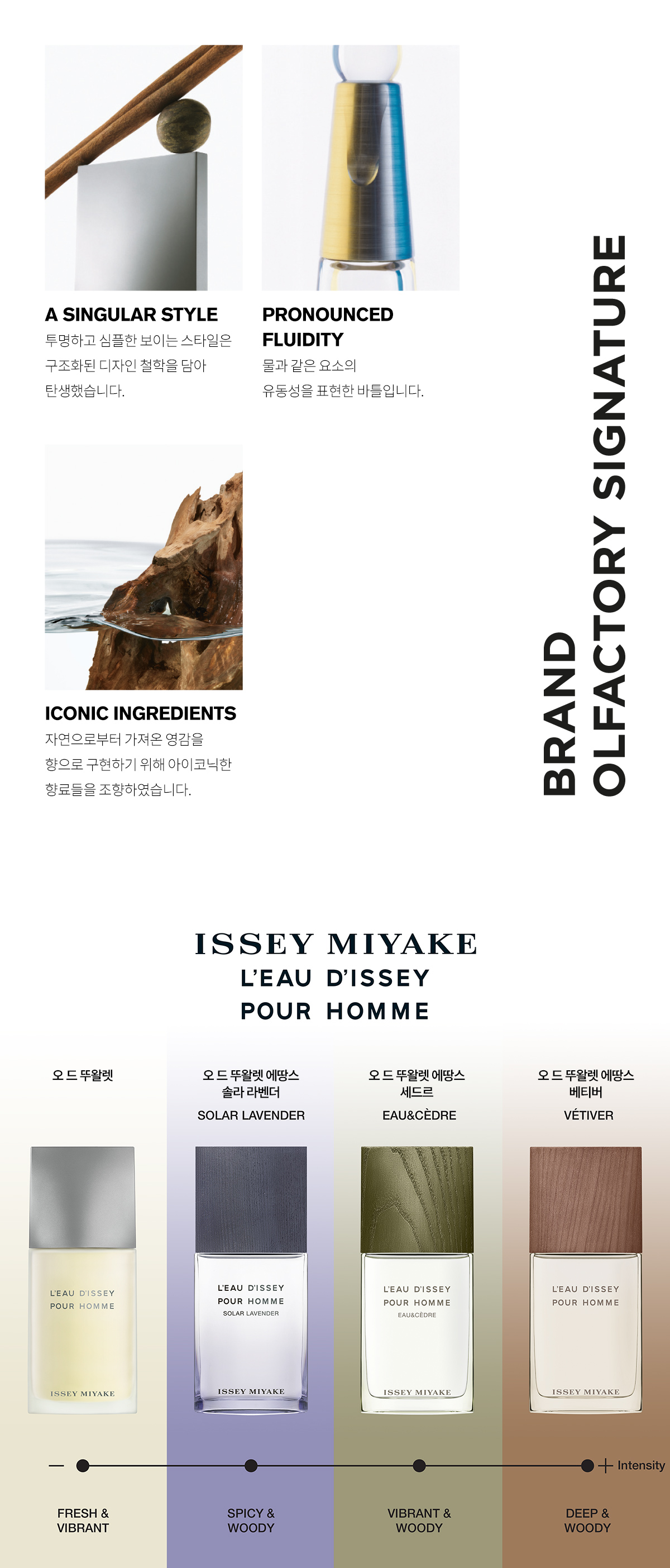 이세이미야케 퍼퓸(ISSEY MIYAKE PERFUME)은 패션과 뷰티는 물론 다양한 카테고리 라인을 선보이는 이세이미야케의 향수 브랜드입니다. 섬세한 우디 향을 담은 옴므 라인이 대표적으로, 자연의 신비로운 매력을 담은 남성 향수 컬렉션을 선보입니다.