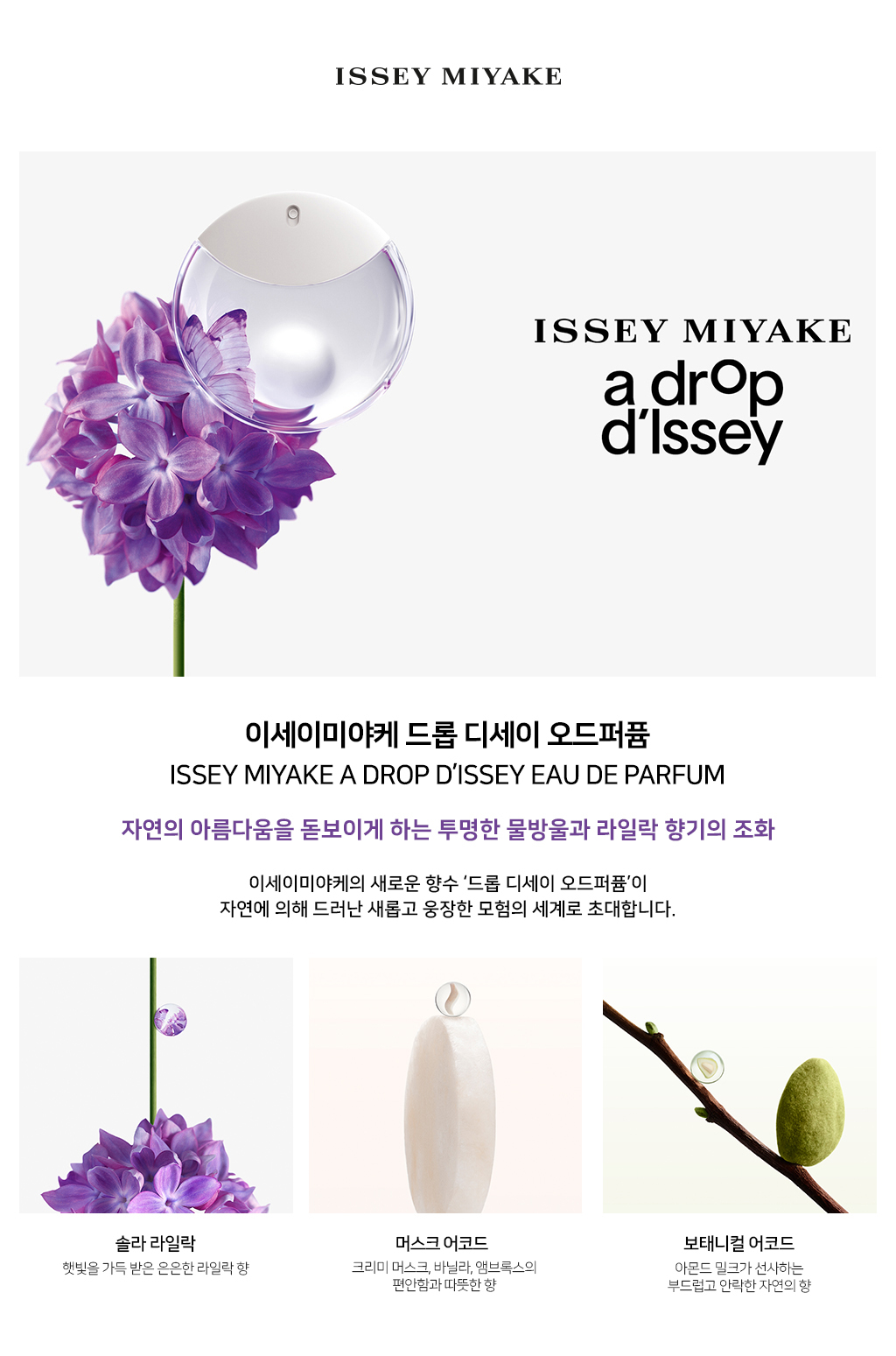이세이미야케 퍼퓸(ISSEY MIYAKE PERFUME)은 패션과 뷰티는 물론 다양한 카테고리 라인을 선보이는 이세이미야케의 향수 브랜드입니다. 섬세한 우디 향을 담은 옴므 라인이 대표적으로, 자연의 신비로운 매력을 담은 남성 향수 컬렉션을 선보입니다.