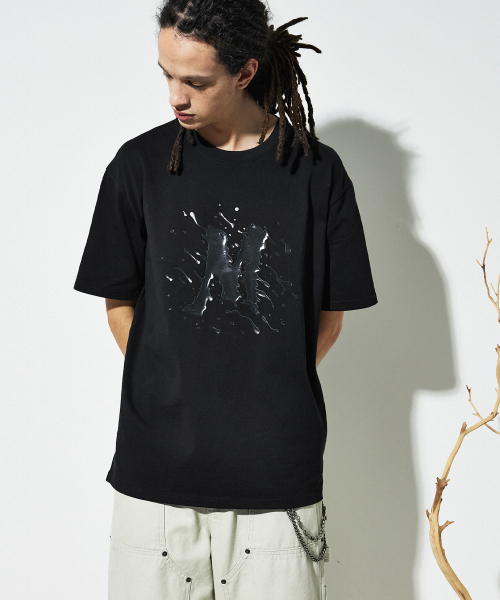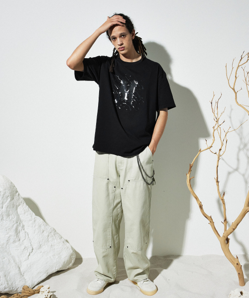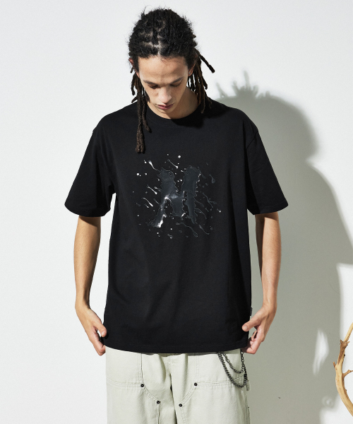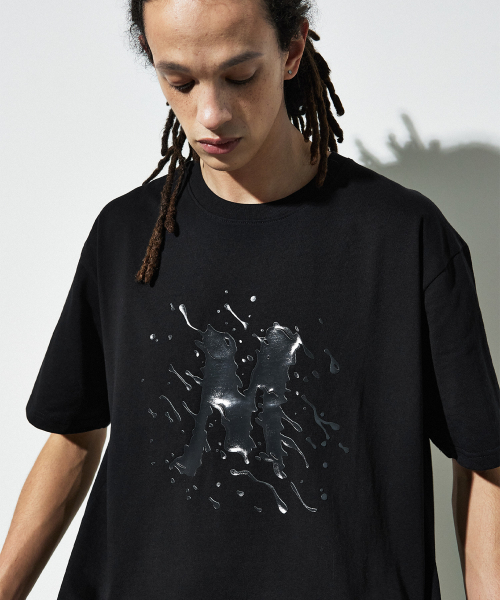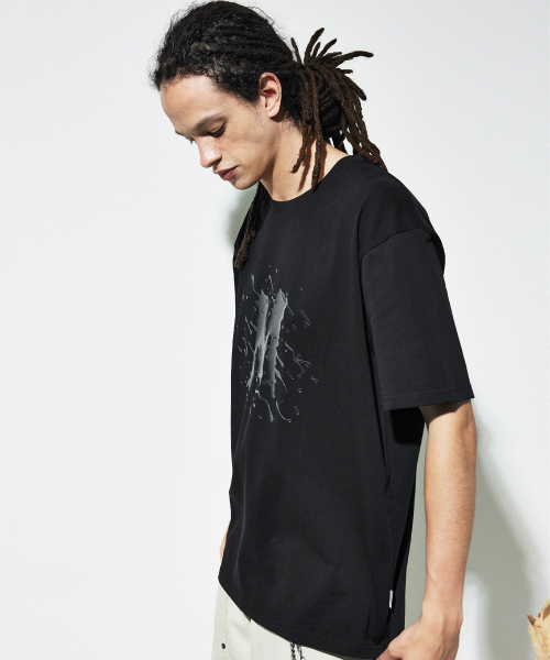 스웩버 3575 페인팅로고 세미오버핏 블랙 반팔티