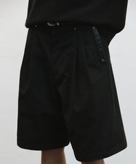 폴디드 레더 패치 와이드 버뮤다 팬츠 [블랙]