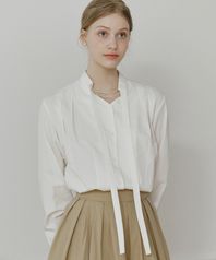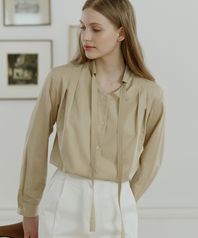 Bow Tie Pintuck Blouse - Beige