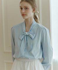 V-neck Tie Blouse - Sky Blue