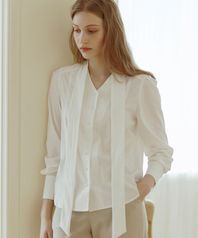 V-neck Tie Blouse - Off White