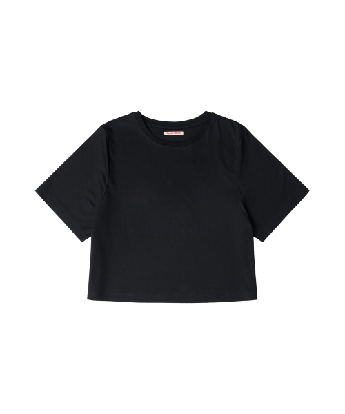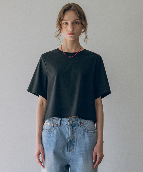 A3488 루즈핏 크롭 티셔츠_Black
