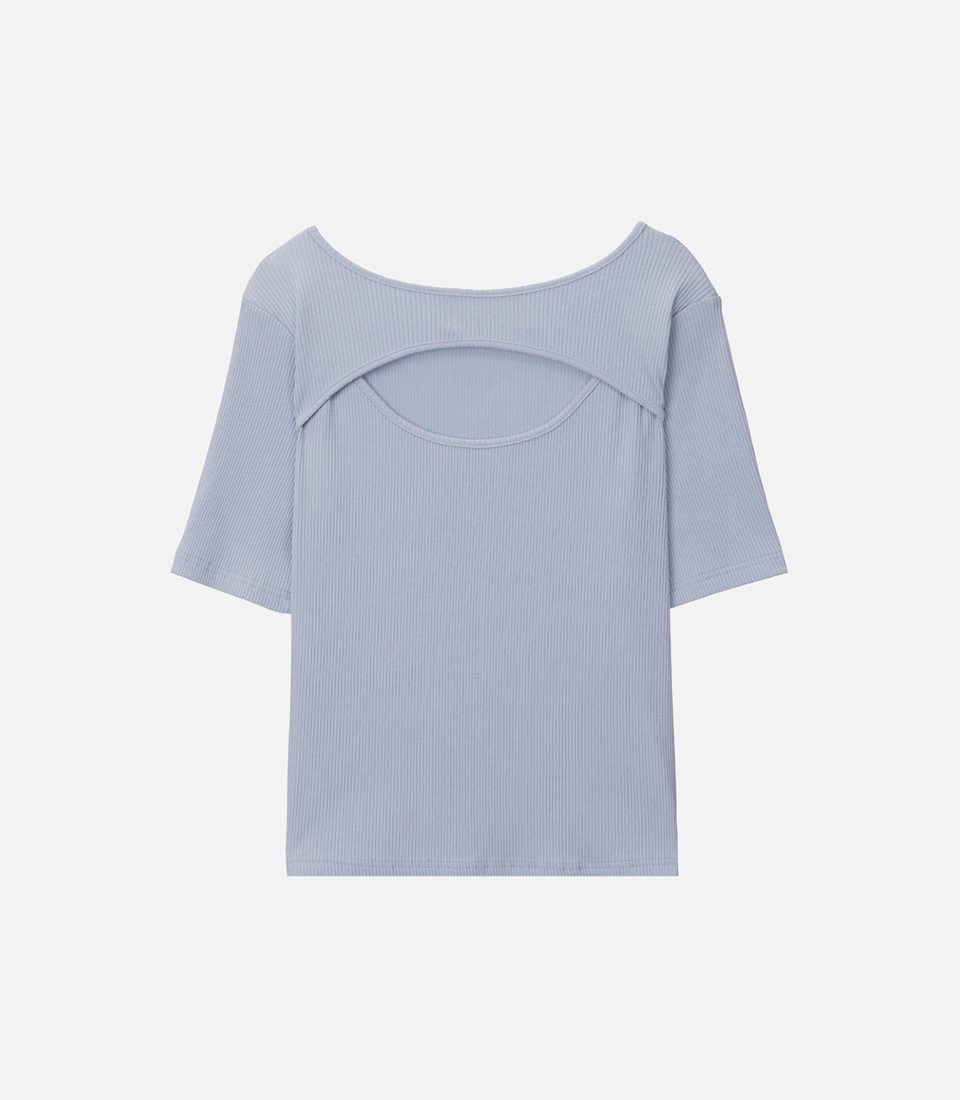 라인 스퀘어넥 티셔츠_연보라