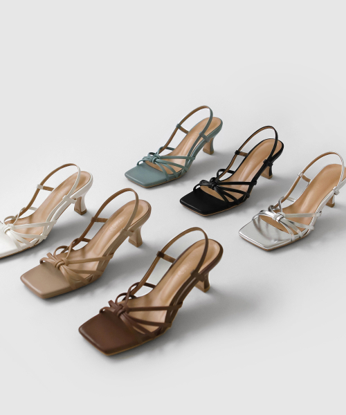 라스트 세련된 디자인의 스퀘어 쉐입에 매듭 디테일의 스트랩으로 슬림한 풋 라인을 연출합니다.