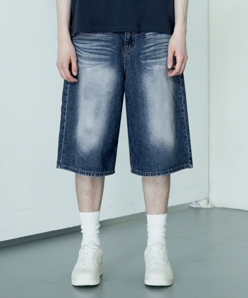 M229 와이드 버뮤다 데님 팬츠_진청