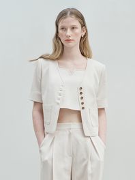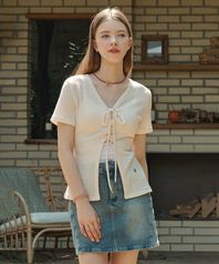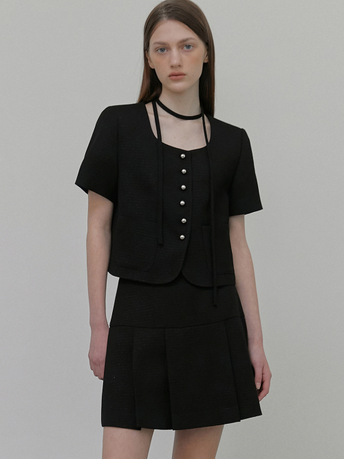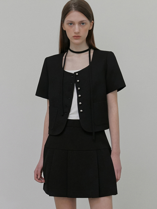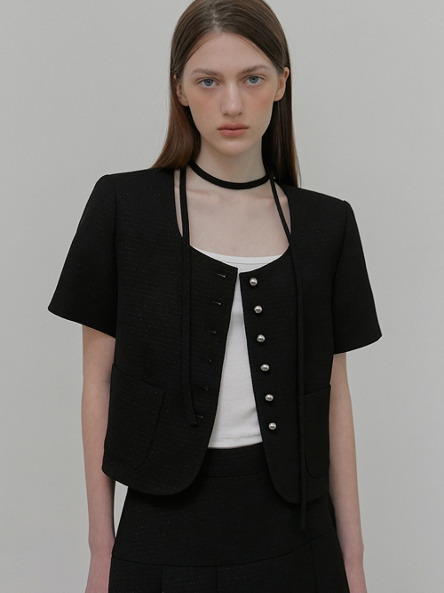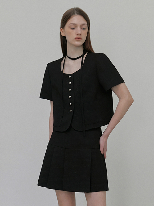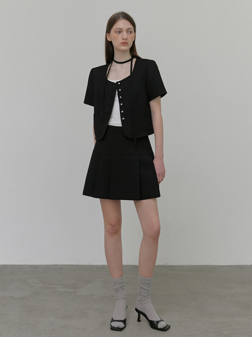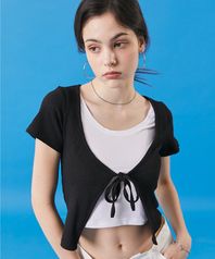 여름 쿨링 크롭 볼레로 리본끈 반팔티 가디건 [BLACK]