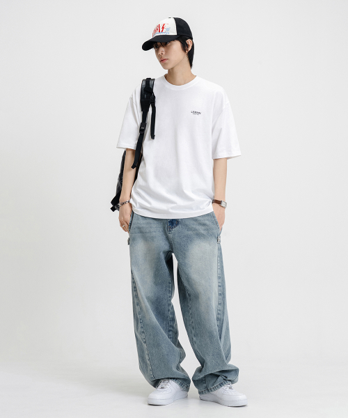 베이직 로고 나염 오버핏 반팔 티 [화이트]