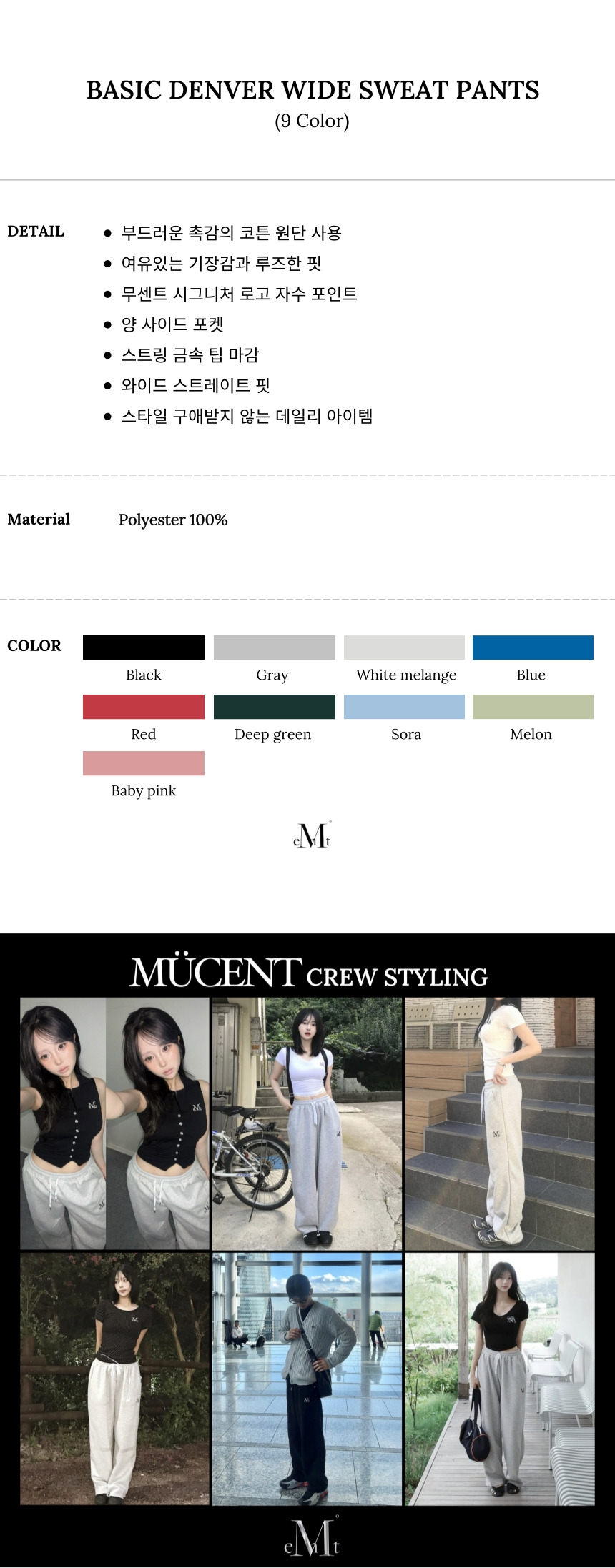 베이직 덴버 와이드 스웻 팬츠 남녀공용 (9컬러)