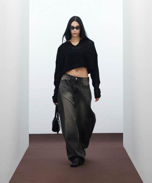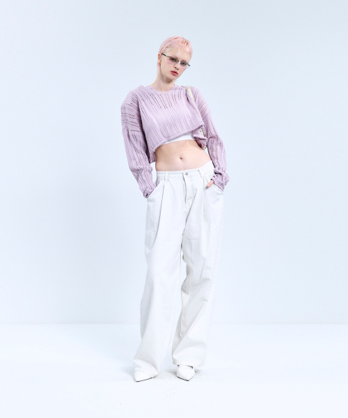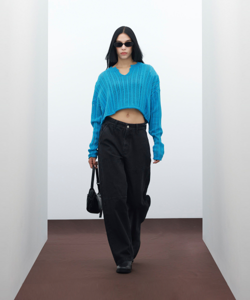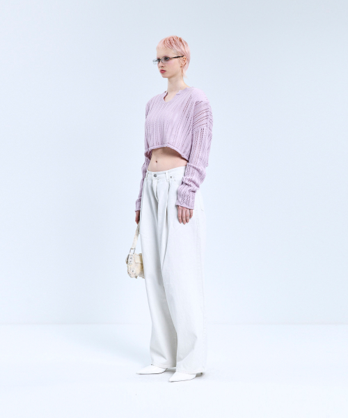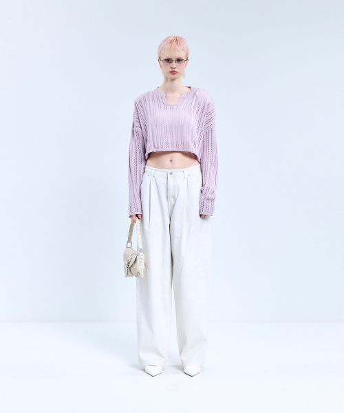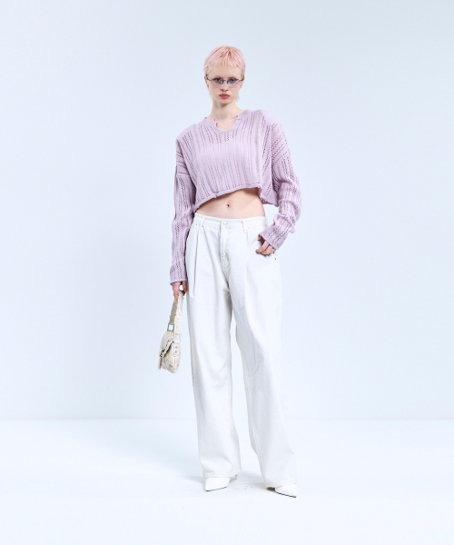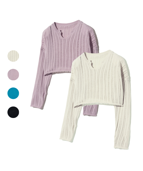 85-VIVAJ017 펀칭 오픈넥 크롭 니트 4color