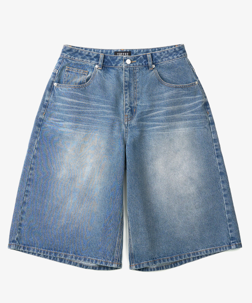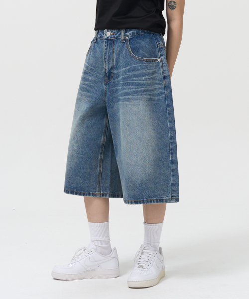 워시드 버뮤다 데님 팬츠 (BLUE)
