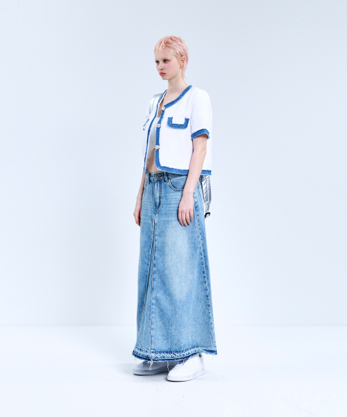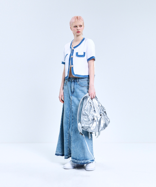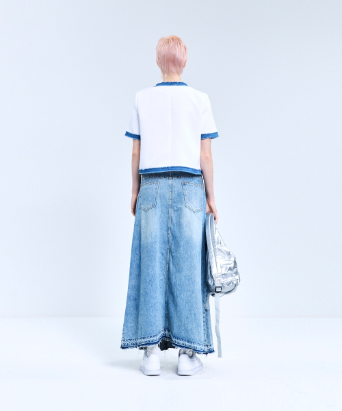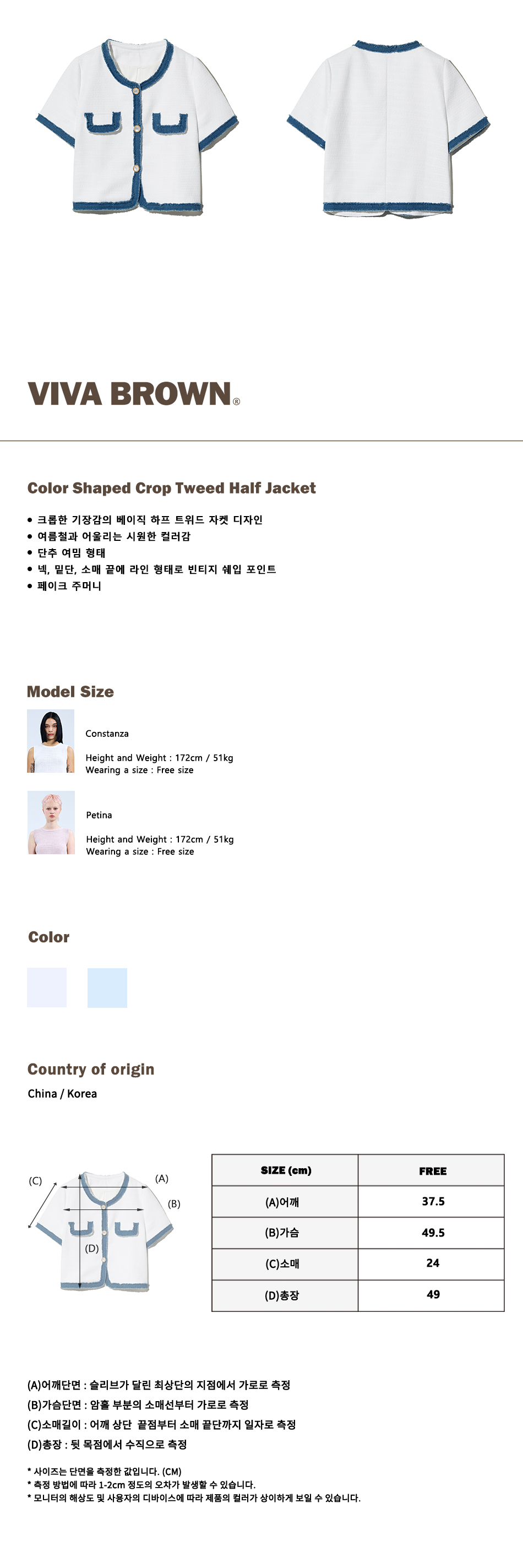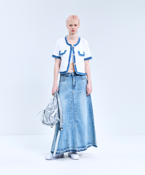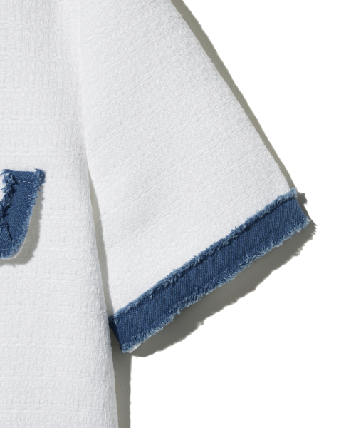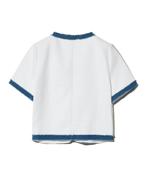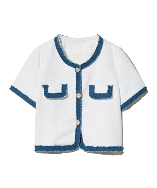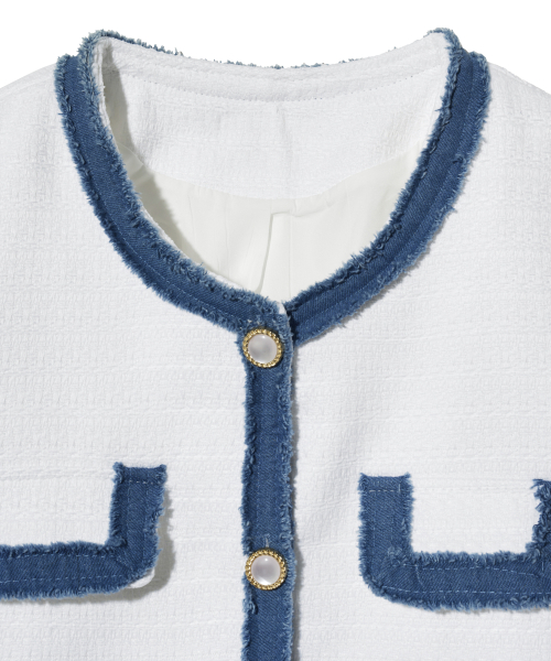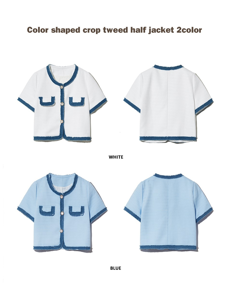 85-VIVAJ053 컬러 쉐입 크롭 트위드 하프 자켓 화이트