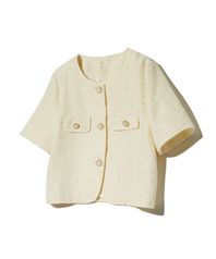 85-VIVAJ055 텍스처드 라운드 크롭 트위드 하프 자켓 화이트